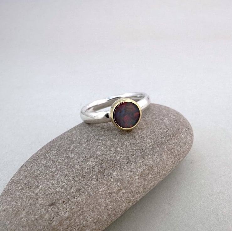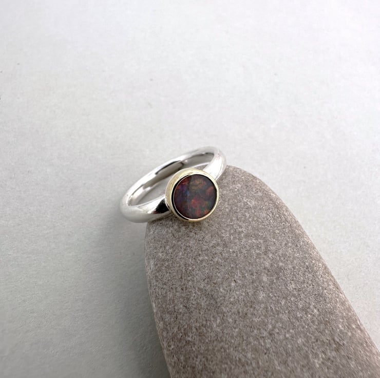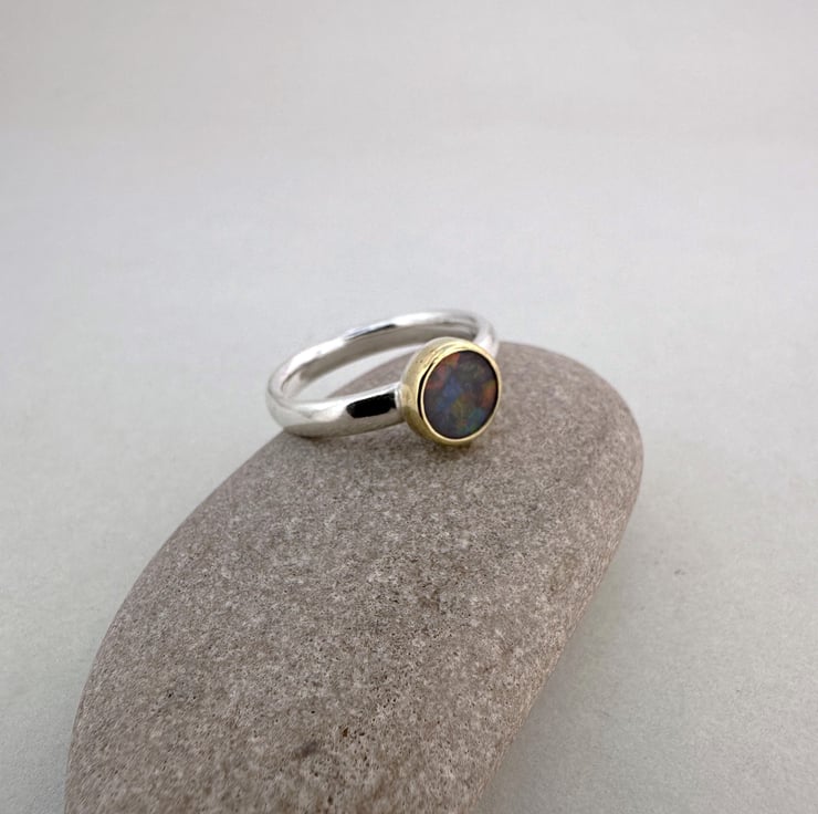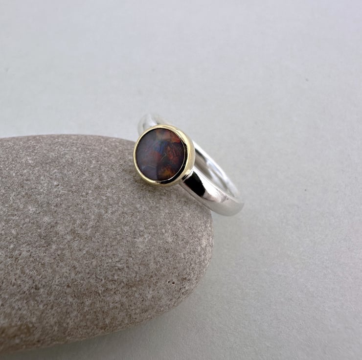 18ct Gold, Sterling Silver and Semi-Black Opal Ring UK Size M