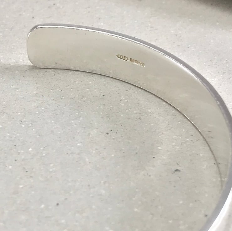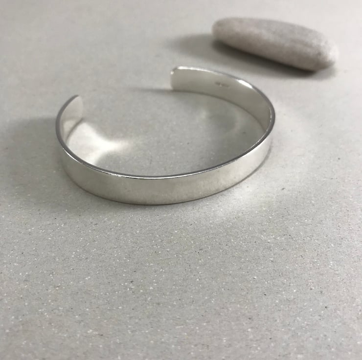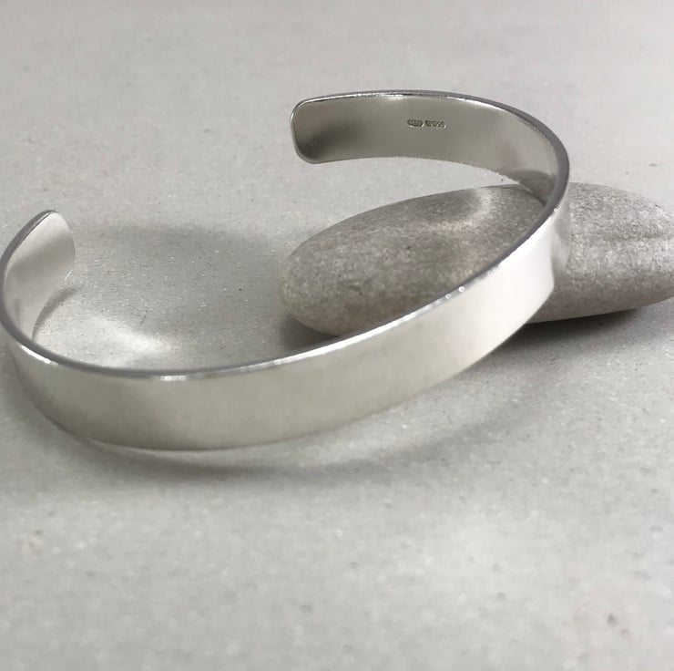 These sterling silver cuffs are made by myself in my workshop, designed with gents in mind but can equally be worn by women too. The cuffs have been shaped by hand and have been polished to a high shine which catches the light wonderfully. The cuffs themselves measures c. 1 cm in width with a silver thickness of 1.5 mm giving a nice weight and feel. The openings measure between 3 cm and 3.5 cm.