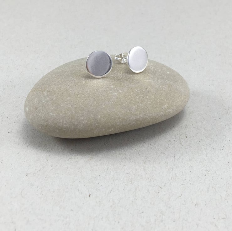 These contemporary disc stud earrings are made from polished sterling silver are perfect for everyday wear. Their modern, minimalist look is subtle yet effective and can be worn by anyone. I love the high polish of the silver surface and the way they reflect light and colours as they are worn. These would make a wonderful gift for anyone who loves craft jewellery, silver earrings, or indeed a little treat for yourself! Perfect for every day wear!