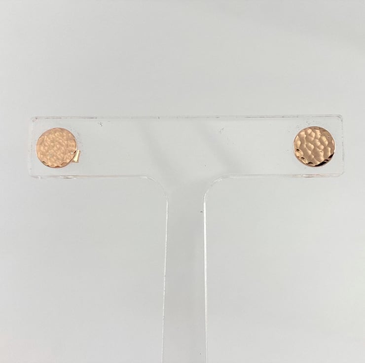 These 6-7mm hammered disc stud earrings are made using eco-friendly recycled 9ct red gold and are inspired by the beach and sea; the ripples and texture of sand, the pebbles on the shoreline. I love the high polish of the hammered gold surface and the way they glimmer as they are worn. These would make a wonderful gift for anyone who loves craft jewellery, gold jewellery, or indeed a little treat for yourself! Perfect for every day wear!