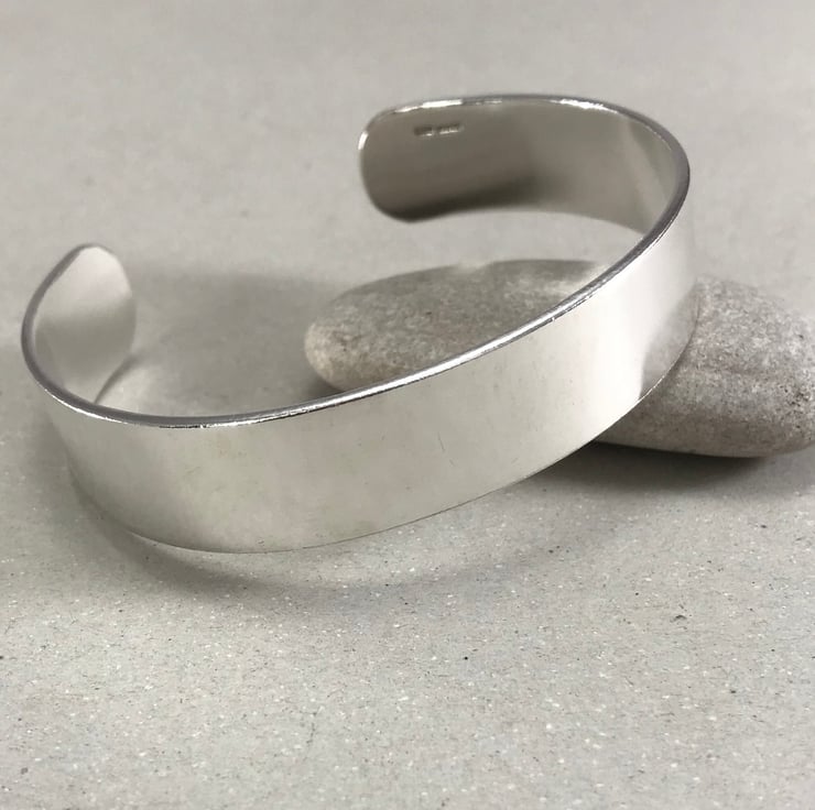 These sterling silver cuffs are made by myself in my workshop, designed with gents in mind but can equally be worn by women too. The cuffs have been shaped by hand and have been polished to a high shine which catches the light wonderfully. The cuffs themselves measures c. 1.5 cm in width with a silver thickness of 1.5 mm giving a nice weight. The openings measure between 3 cm and 3.5 cm.