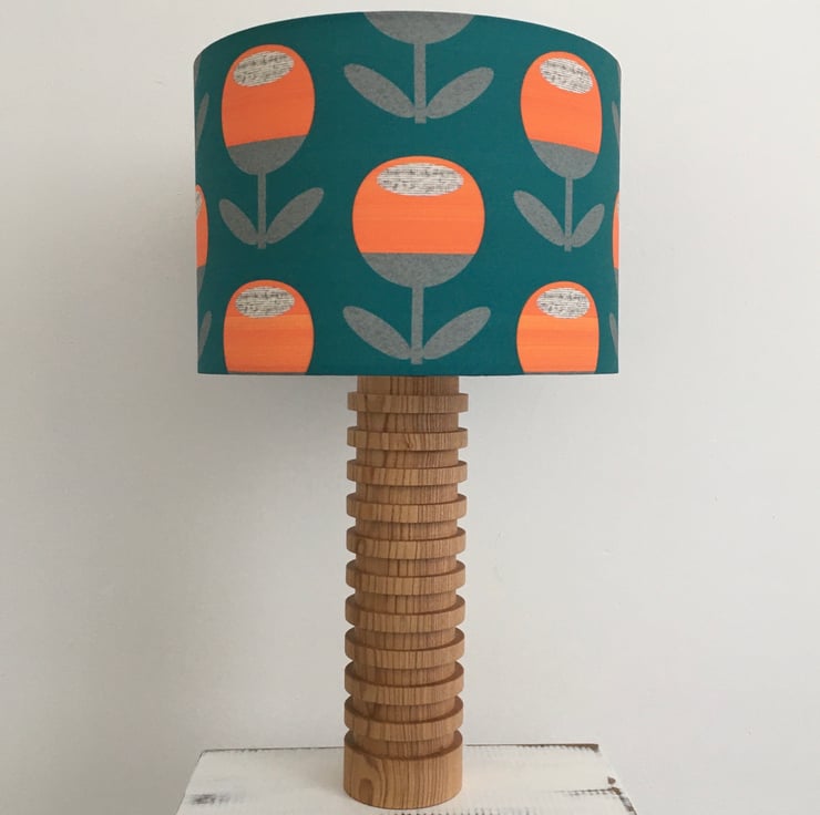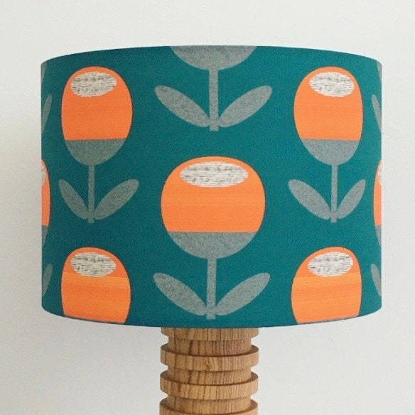 This is such a stunning fabric! The bold bright orange tulip flower design has been printed onto a teal cotton fabric. It would make a statement in any room, in any home! If you love modern mid century design then this lampshade is definitely for you!