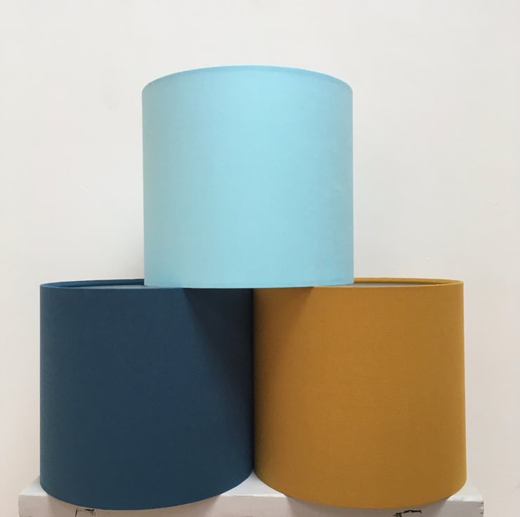 A bespoke drum lampshade, made by hand in the Emporium of Illumination studio in Helston, Cornwall, using 100% French poplin cotton. Available in;