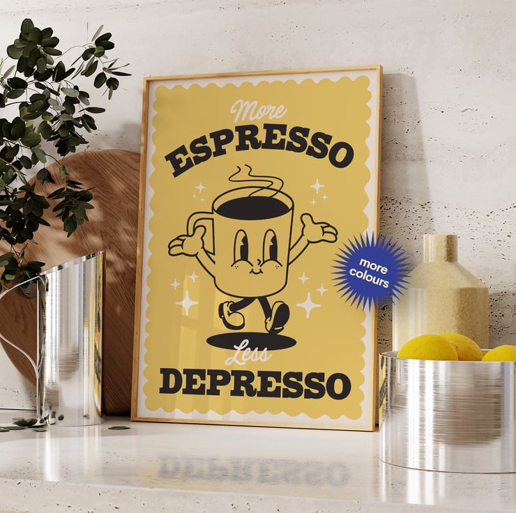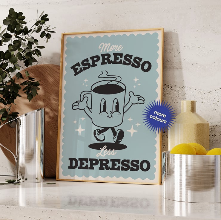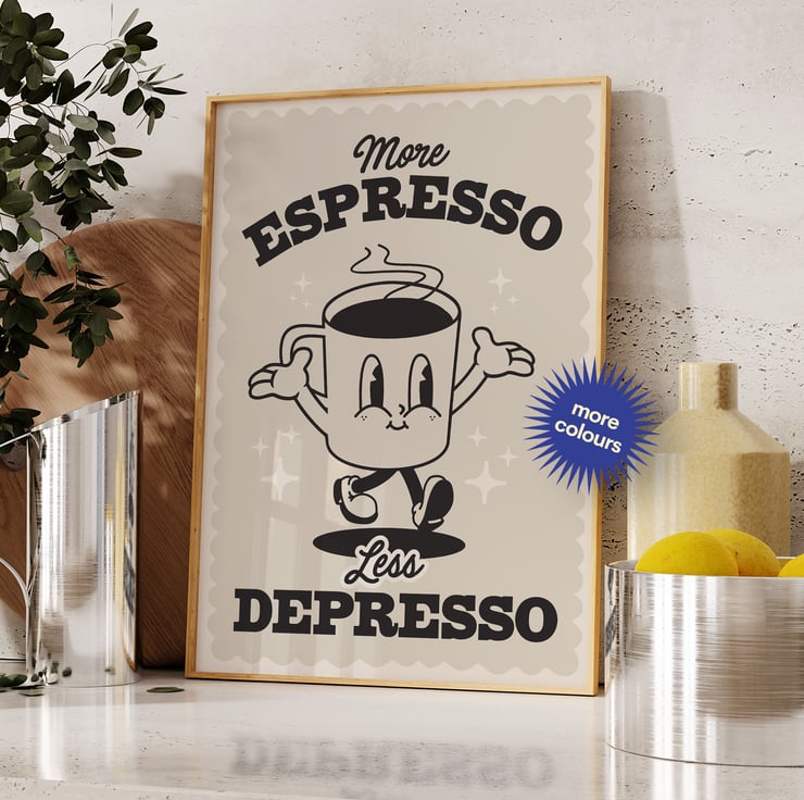 More Espresso Less Depresso Funny Coffee Kitchen New Home Cafe Gift Quote Print