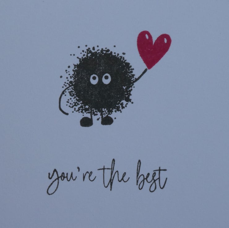 One has a bug holding a red heart in one hand and the message 'you're the best'.