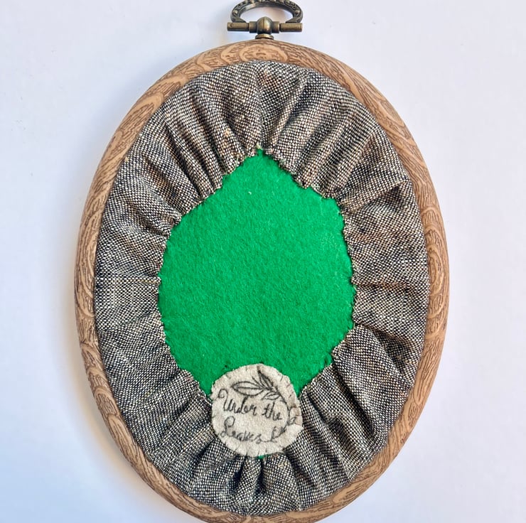 The embroidery had been hand finished at the back with a gathering stitch and a piece of felt all hand whipped into place.