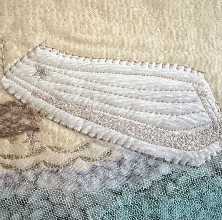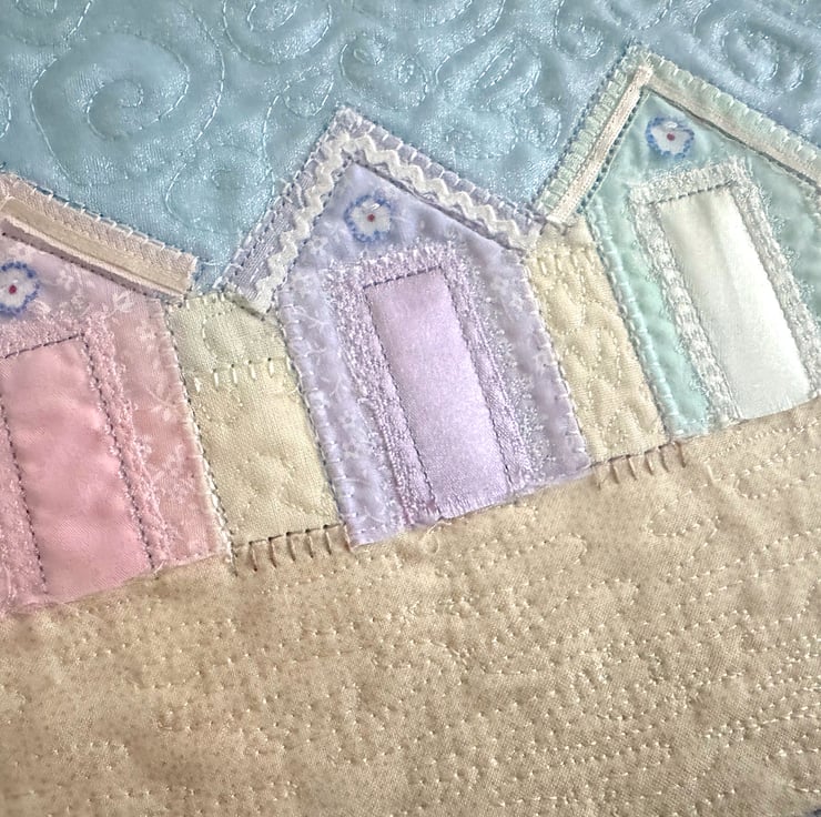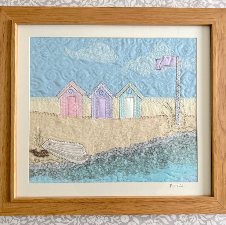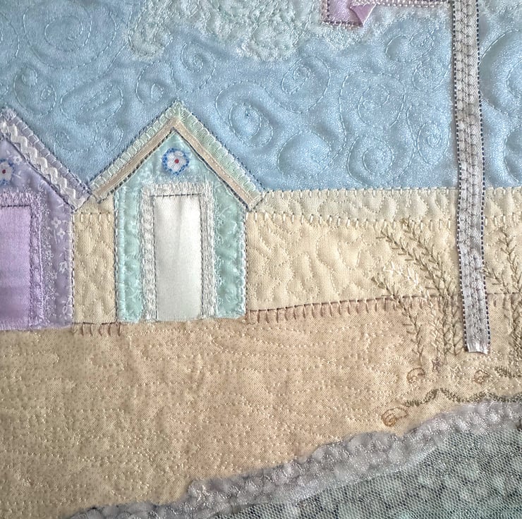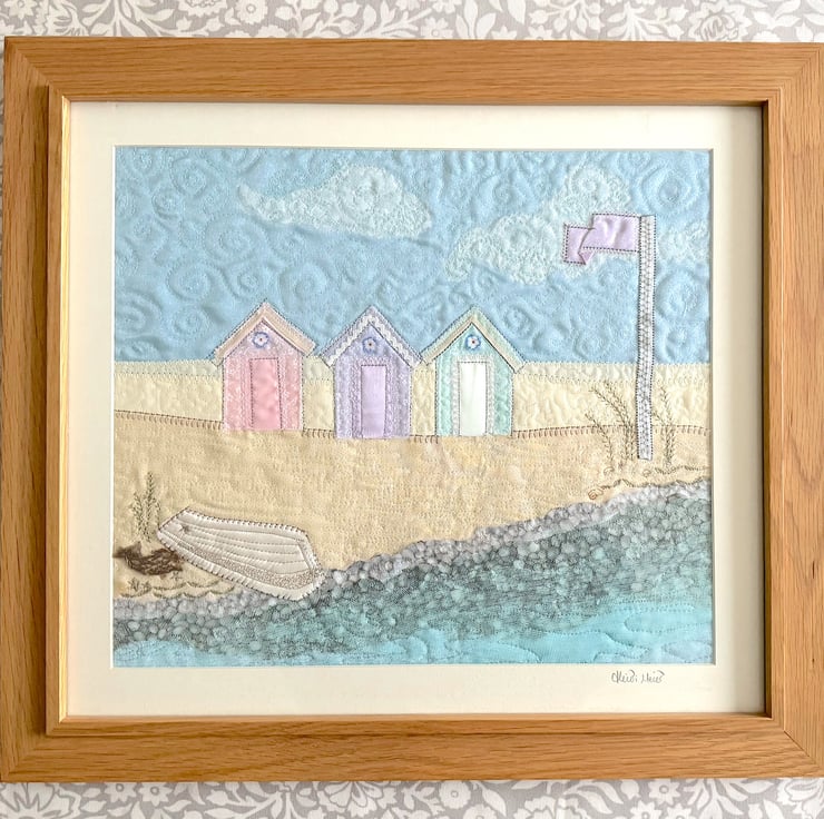 'Beach Huts' is a raw edge appliqué artwork created using a combination of machine and free machine embroidery and is the fourth in the Beach Huts series from textile artist Heidi Meier.