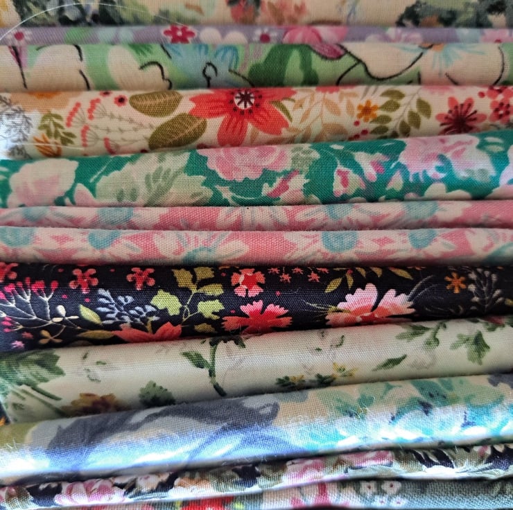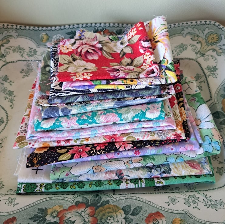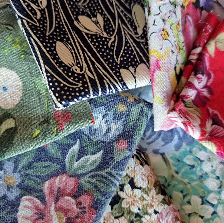 Treat yourself to a bunch of flowers with this blooming big bundle of 16 good-sized cotton fabric pieces. There are vintage, repurposed, Liberty and new pieces in this bundle full of explosive pattern and colour.