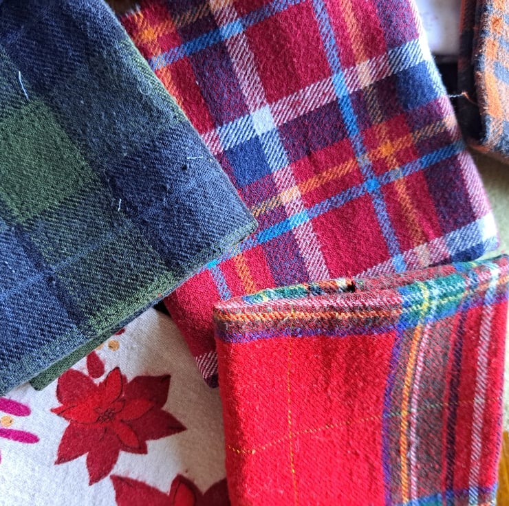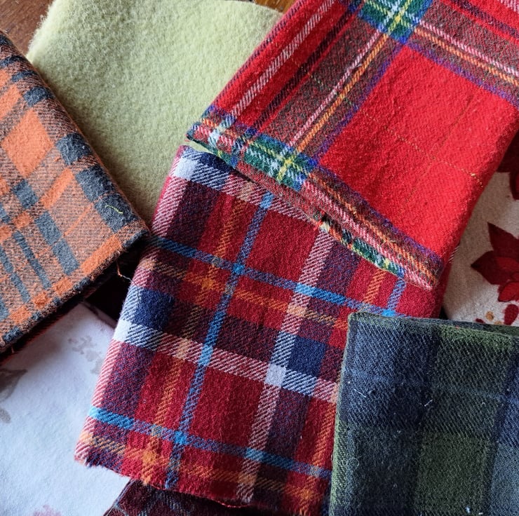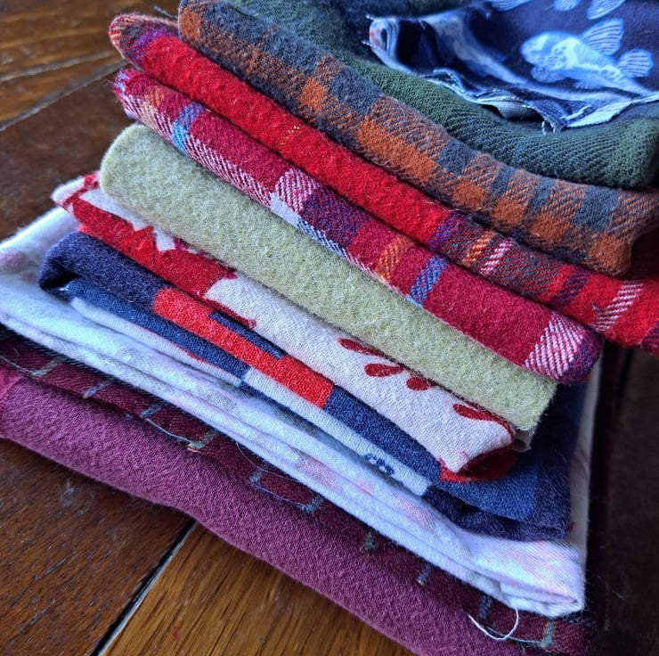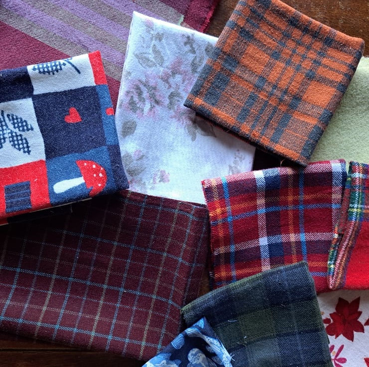 If you like your fabric soft to the touch then this flannel-tastic little collection of brushed cotton pieces is the one for you. This springy bundle contains 10 repurposed, vintage and remnant cotton fabrics, including a lovely old piece of claret Viyella. Softness guaranteed.