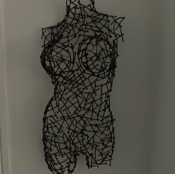 Silloutte of naked lady made from nails welded together approximately 60 cm high and 30 cm wide comes with steel hanging cable fitted