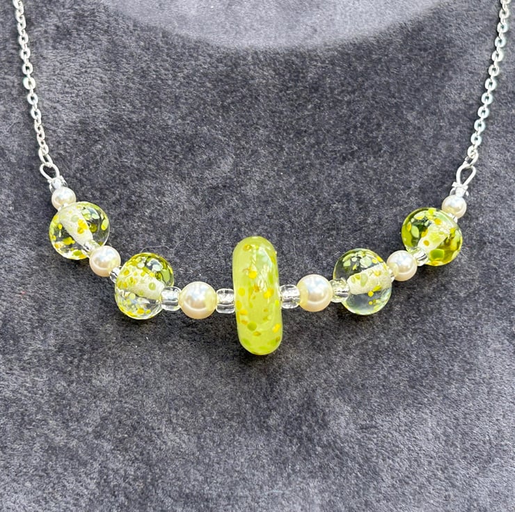lemon yellow spotted lampwork glass beaded necklace