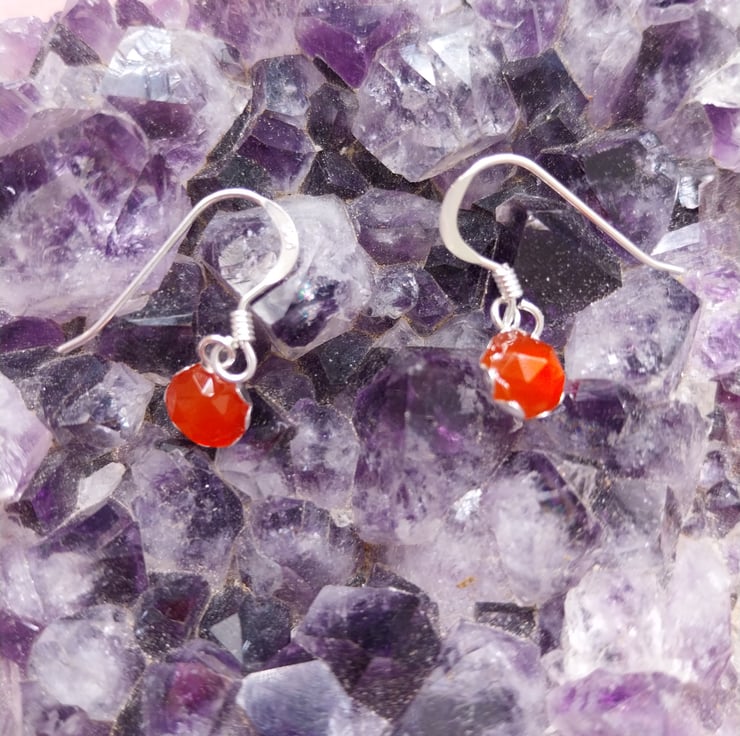 Handmade using Sterling Silver findings these earrings feature beautiful hand set faceted Carnelian stones.
