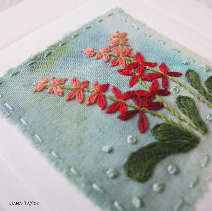 Inspiration for my embroideries often comes from my garden and my daily walks in the beautiful New Forest. I sketch and take photos and these are used as a basis for my inked fabric backgrounds and embroidery designs. I found this particular plant in Exbury Gardens, I sketched it and turned it into an embroidery.