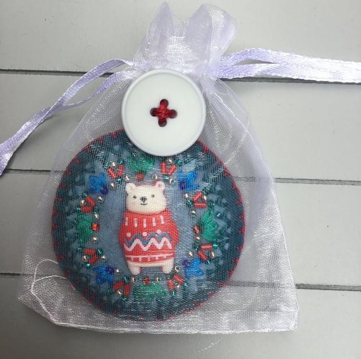 This brooch is gift wrapped in an organza bag decorated with a pale blue button. A perfect gift for anyone who likes polar bears….or winter….It’s light to post as a birthday, friendship or thank you gift….or to treat yourself….
