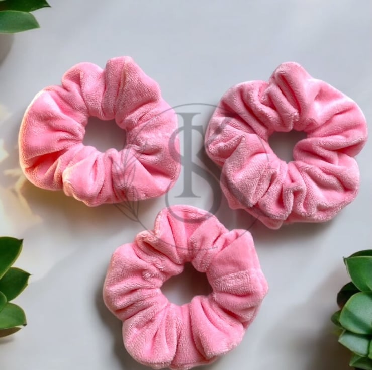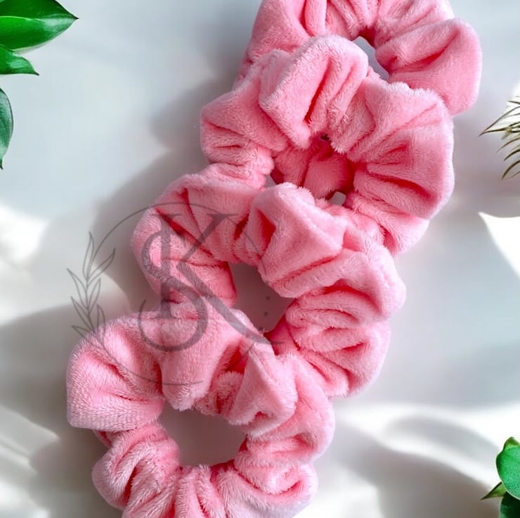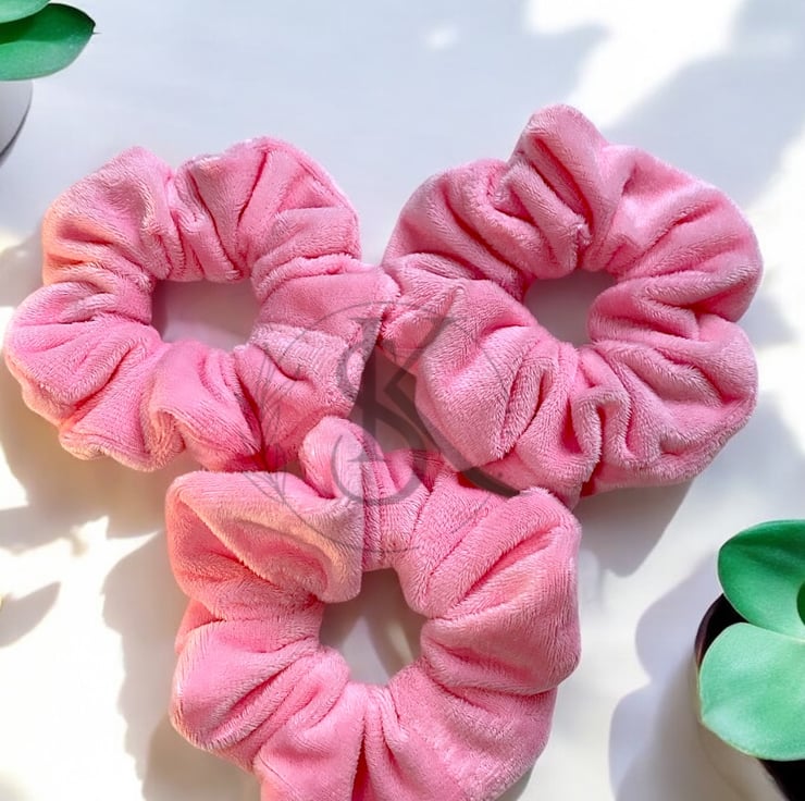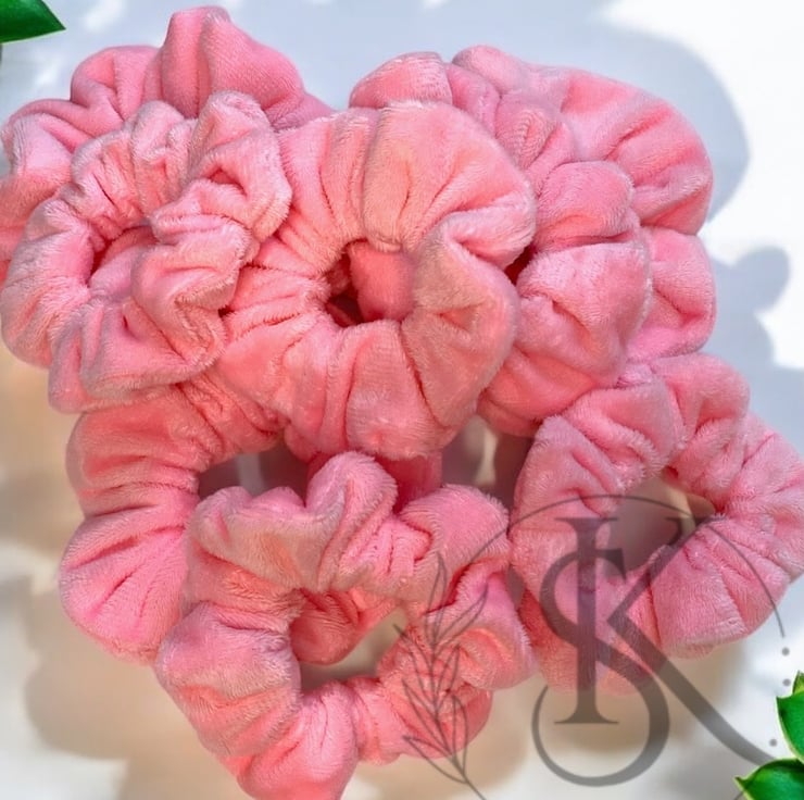 The plush fabric is soft, cosy, and easy on the hair, the blush-pink colour is inspired by sweet moments—like a sunrise or cotton candy at a fair. Every scrunchie I make carries a little bit of that warmth and care.