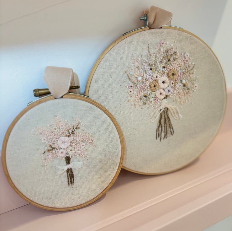 A handmade floral embroidered wall hanging, the perfect addition to help you adorn your space!