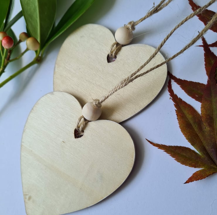 Each decoration measures 8x8cm and 2mm thick, and the twine is approximately 10cm long including the bead. As each is hand decorated, they might differ slightly in the placement of the design or be reversed. They are for indoor use only and for decoration only, so please keep away from small children. They are not to be immersed in water. To clean wipe with a dry or damp cloth.