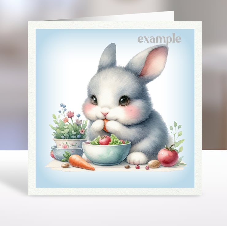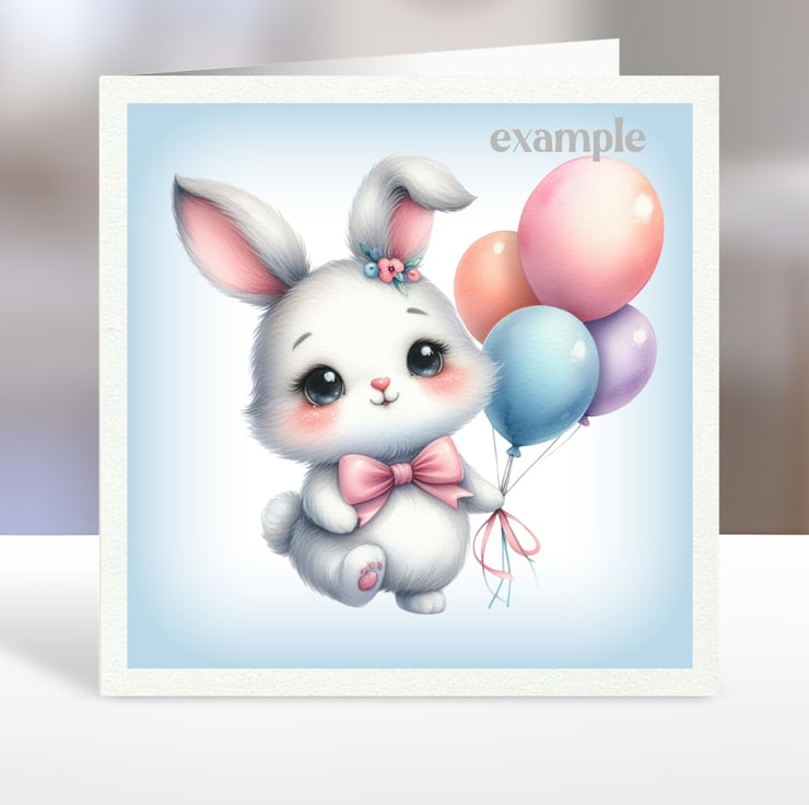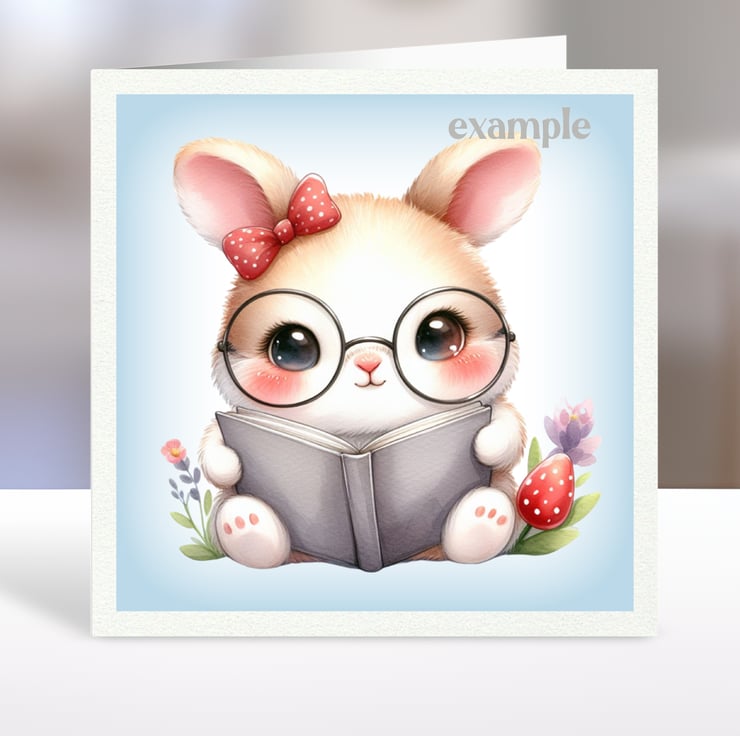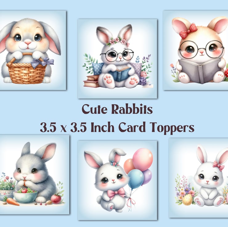 A set of six 3.5 inch square card toppers - cute rabbits.