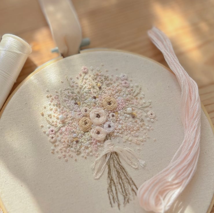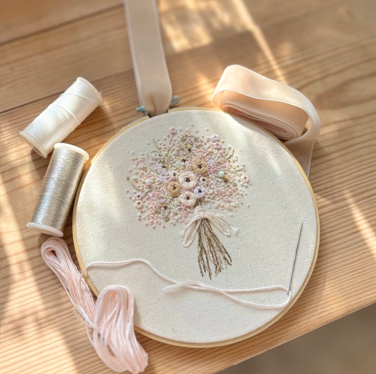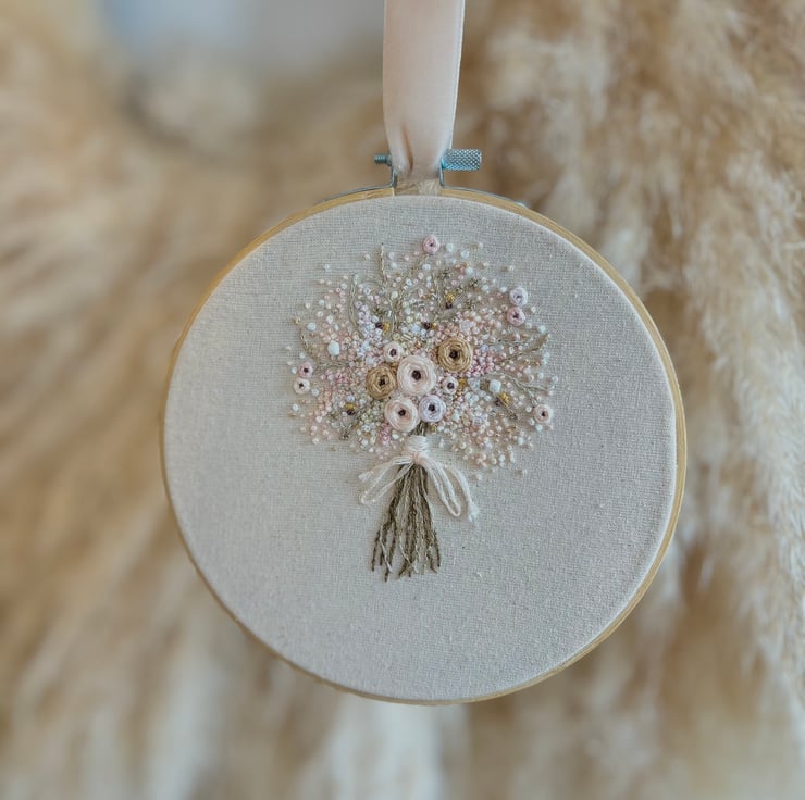 A handmade floral embroidered wall hanging, the perfect addition to help you adorn your space!