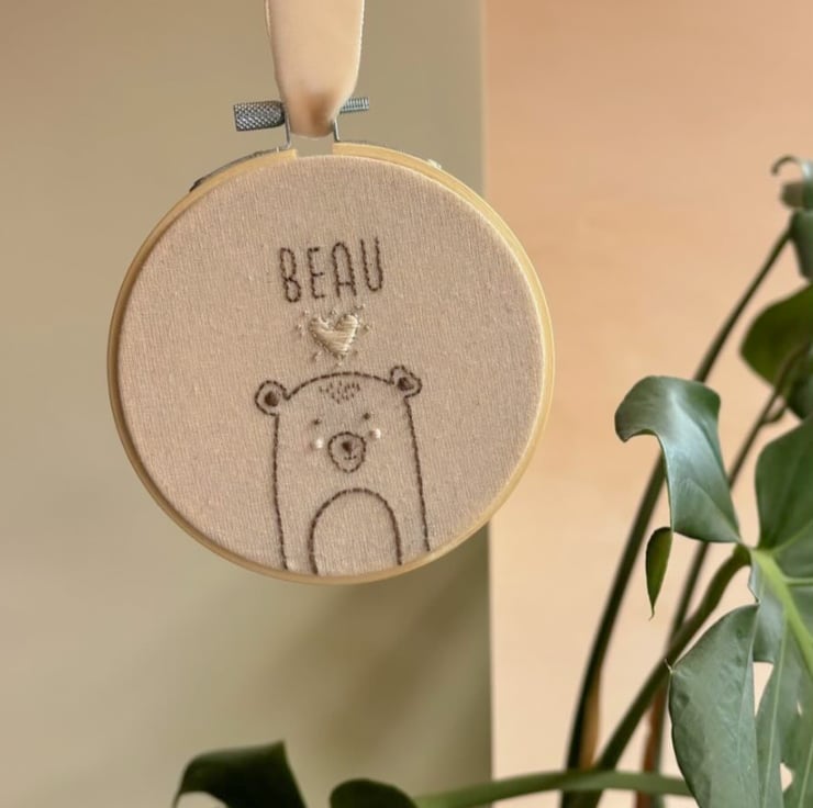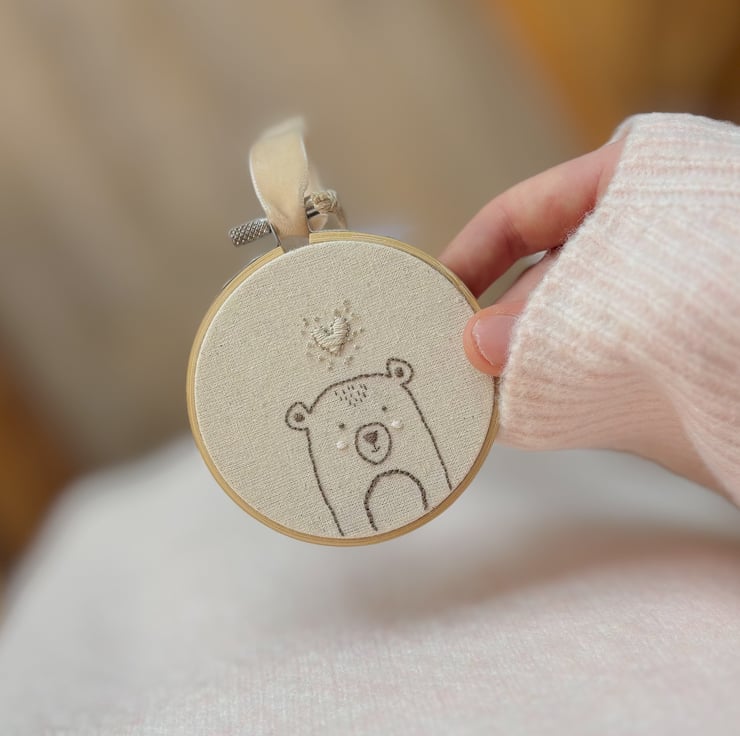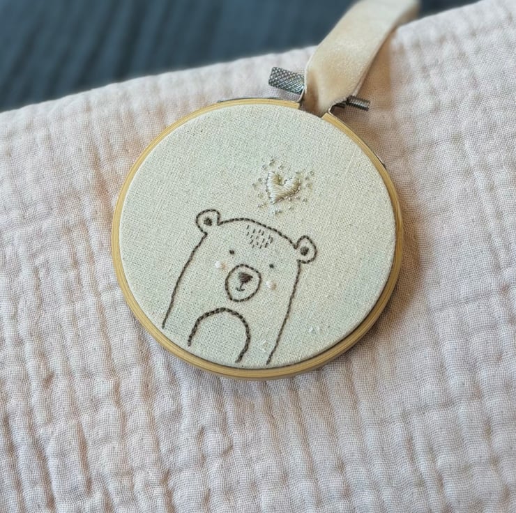 A handmade embroidered bear wall hanging, the perfect addition to help you adorn your space!