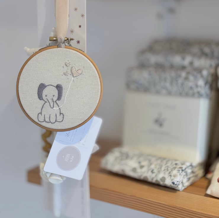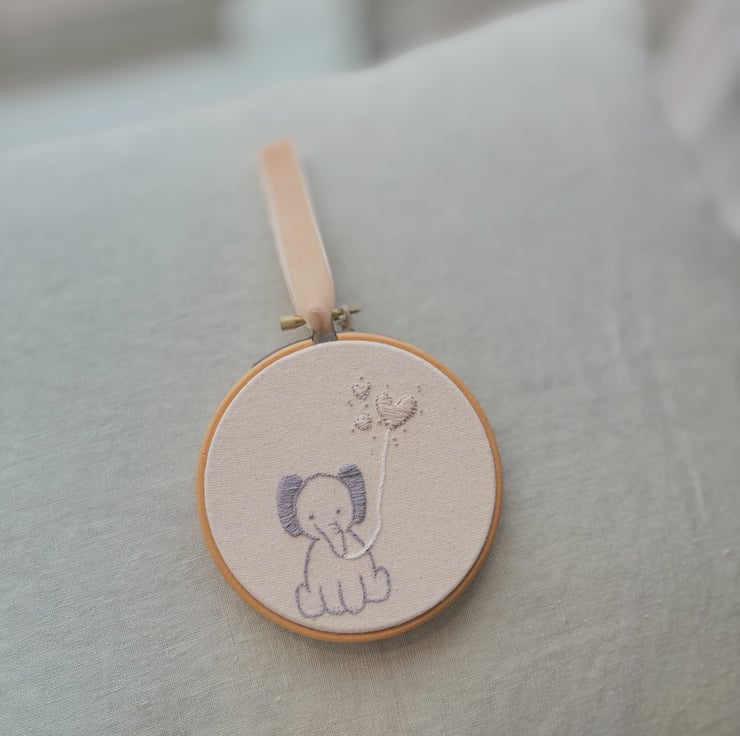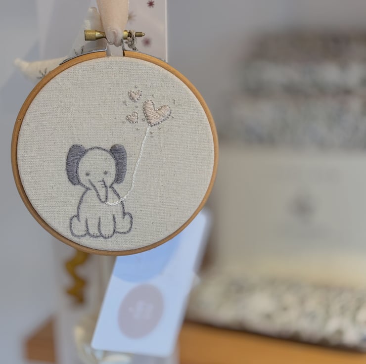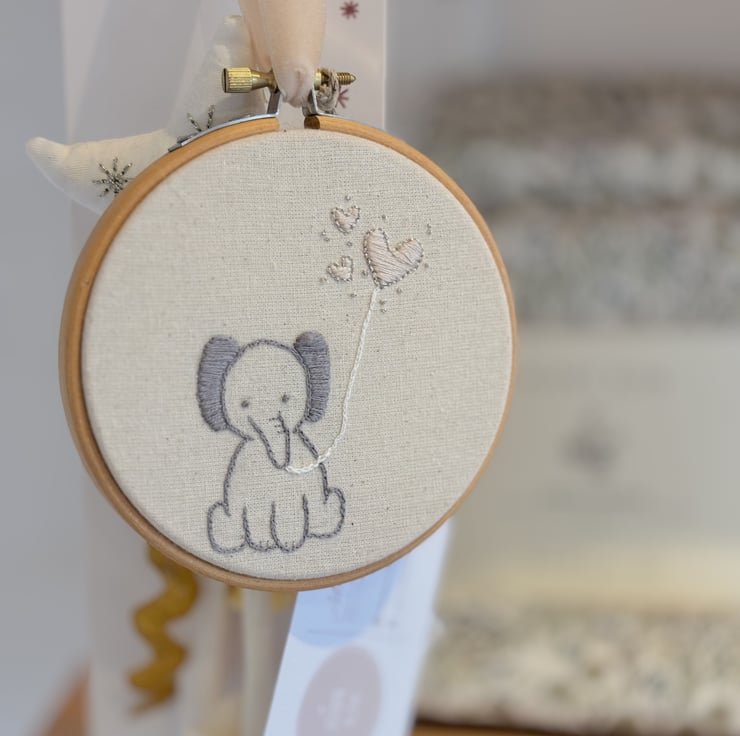 A handmade embroidered elephant wall hanging, the perfect addition to help you adorn your space! This is sure to add cuteness to any room, particularly a nursery. Each piece is designed and handmade individually by me. As each piece is unique, you won’t find another like it!