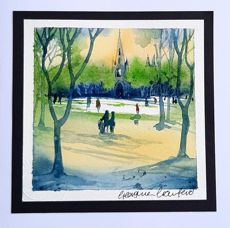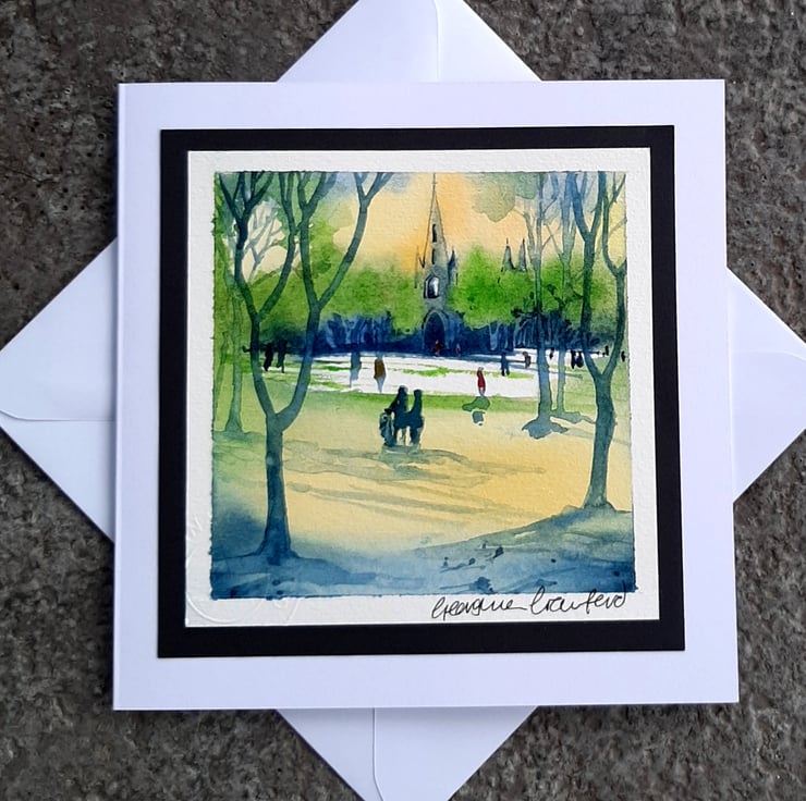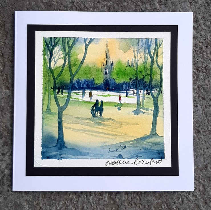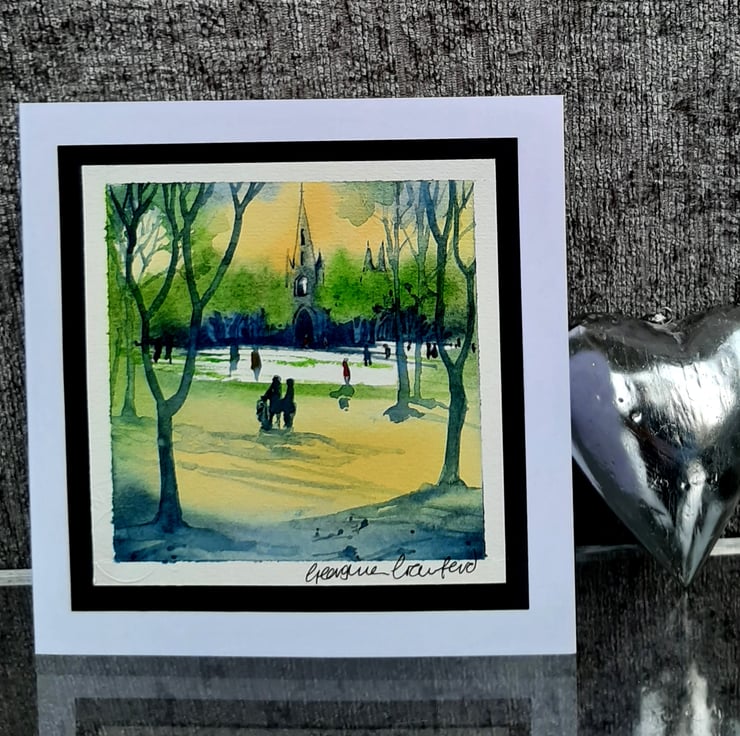Beautiful handpainted watercolour card - just a stroll in the park.