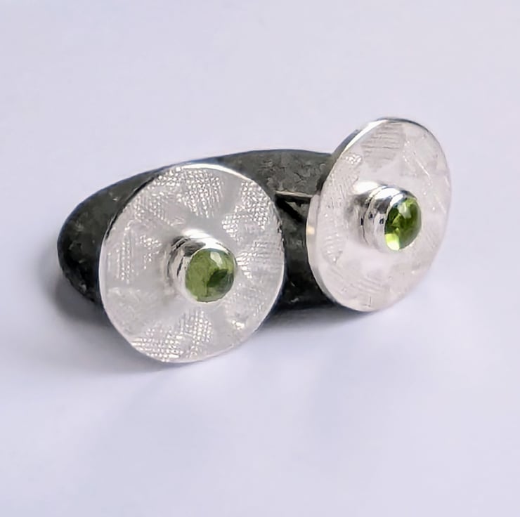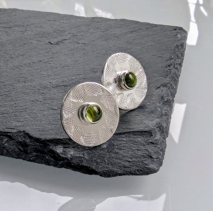 Recycled Sterling Silver Peridot Textured Disc Stud Earrings