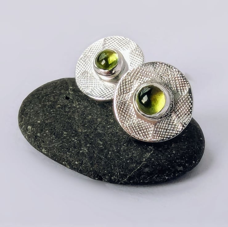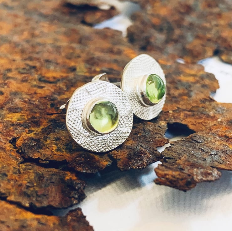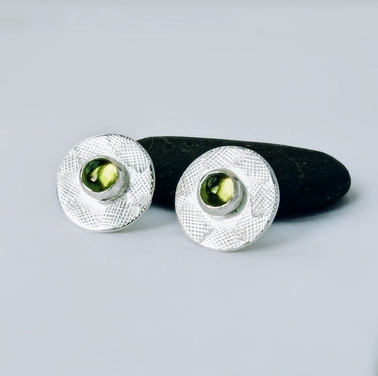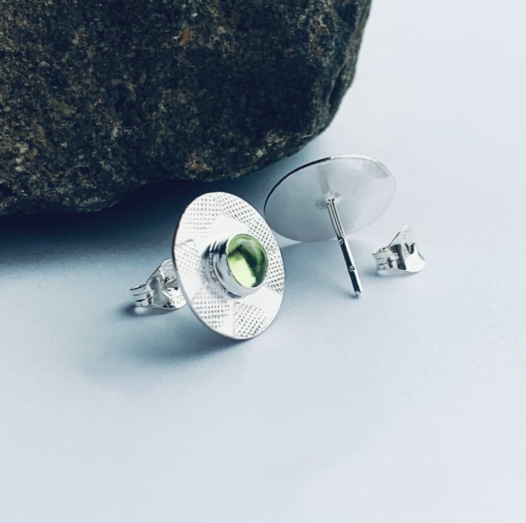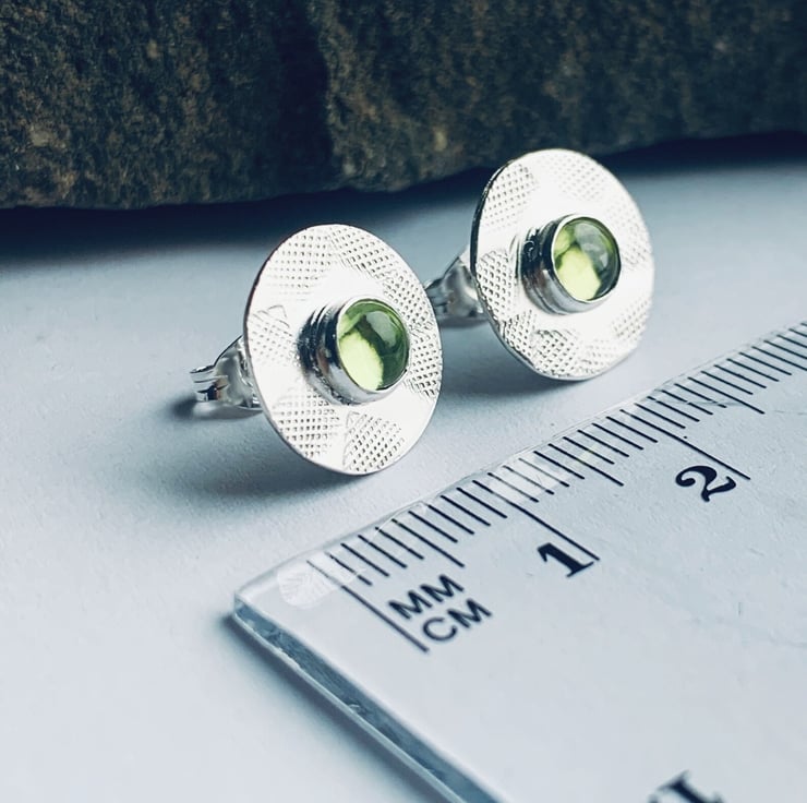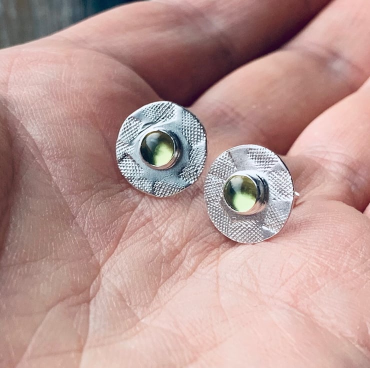 Recycled Sterling Silver Peridot Textured Disc Stud Earrings