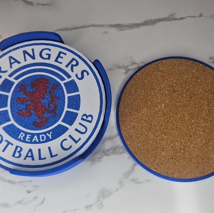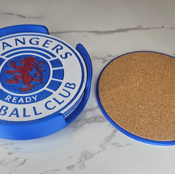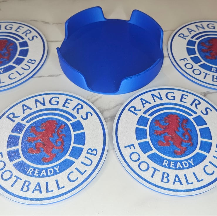 Set of 4 Glasgow Rangers Coasters with Holder – 3D Printed & Durable