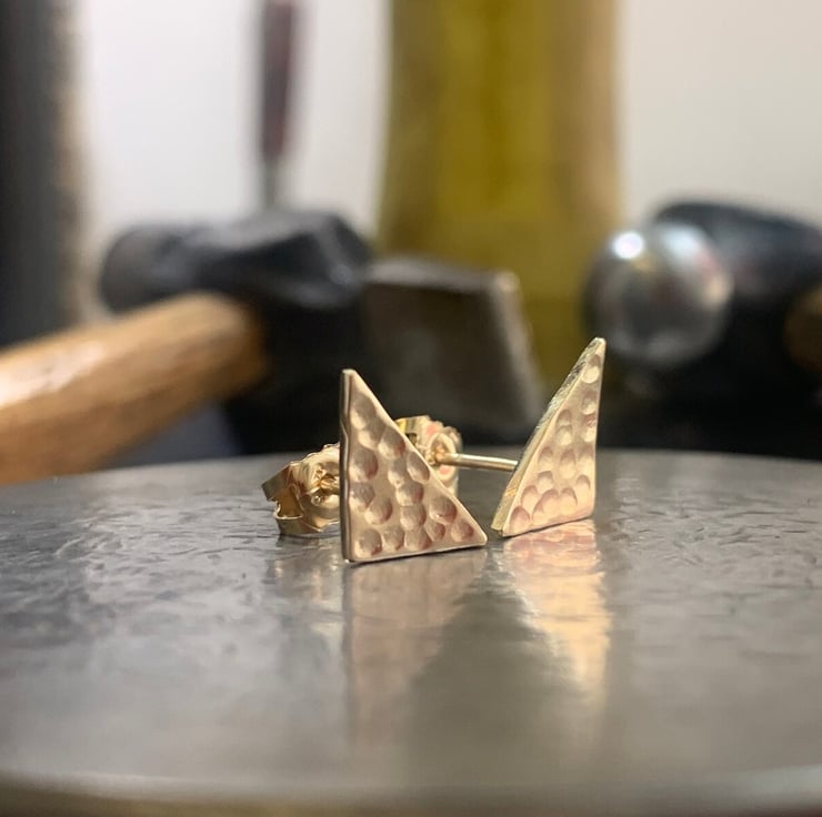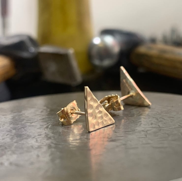 Made from solid 9 carat yellow gold, triangles pierced out from recycled 9 carat gold sheet