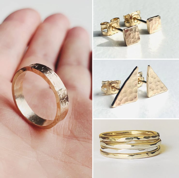 Lightly hammered to add texture, the little dimples on the metal catching the light