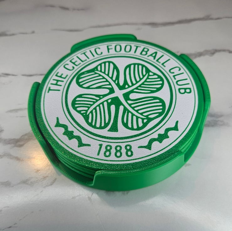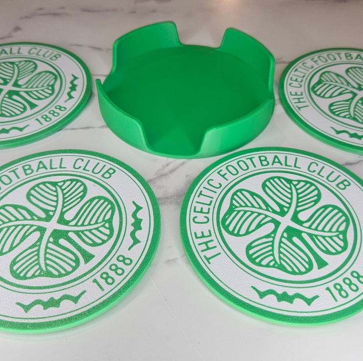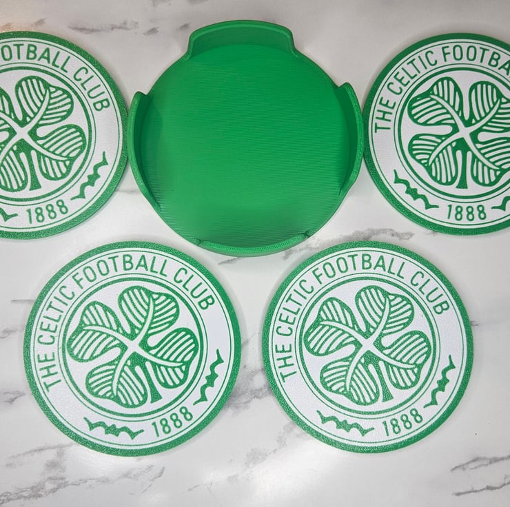 Set of 4 Glasgow Celtic Coasters with Holder – 3D Printed & Durable