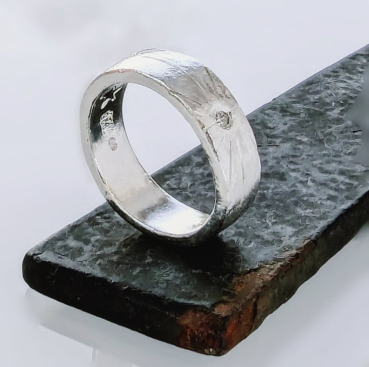 Sterling silver band with a heat flame texture (reticulated) heating the metal until it starts to bubble and breakdown, then immediately take away the flame, The applied texture is unique, tactile and has organic contemporary look.