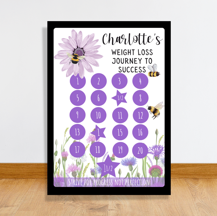 New years resolutions to achieve a weight goal? Get motivated with our bee themed weight loss chart. Track your progress, set goals, and stay motivated throughout the season. Personalised & printed on high quality card and posted to your door!