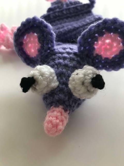 Handmade Crochet Squashed Rat Bookmark 100% acrylic yarn.