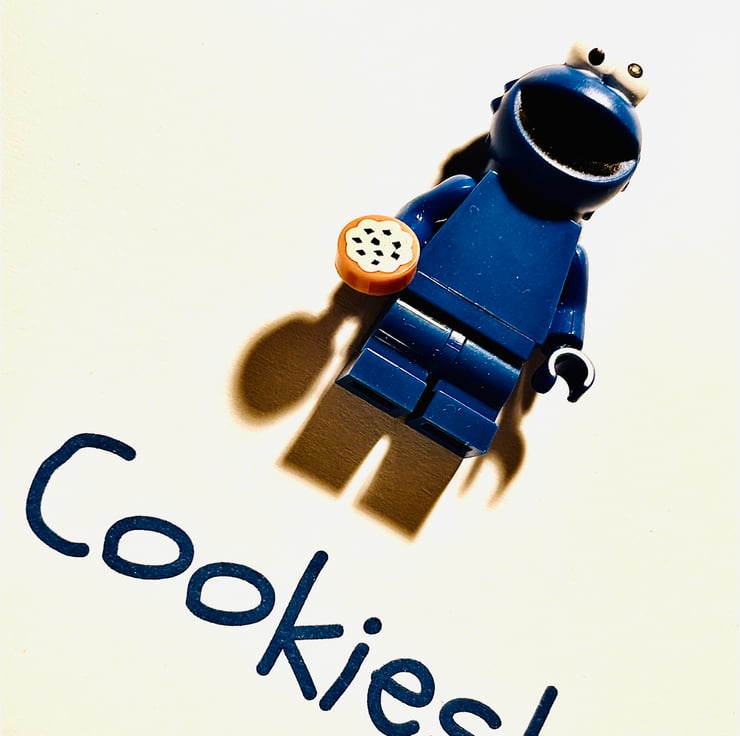 This deep box frame features an adorable minifigure version of the Cookie Monster from the popular US TV show, Sesame Street. He has been mounted in the frame alongside his legendary phrase “Cookies!”