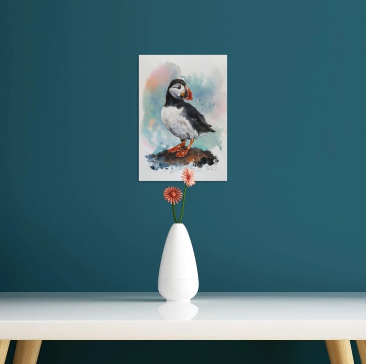 Working from my home studio on the beautiful Isle of Mull off the west coast of Scotland, my paintings are inspired by the wonderful Seascapes, Landscapes and Wildlife that surround me. This particular painting is of the handsome puffin, always entertaining to watch.