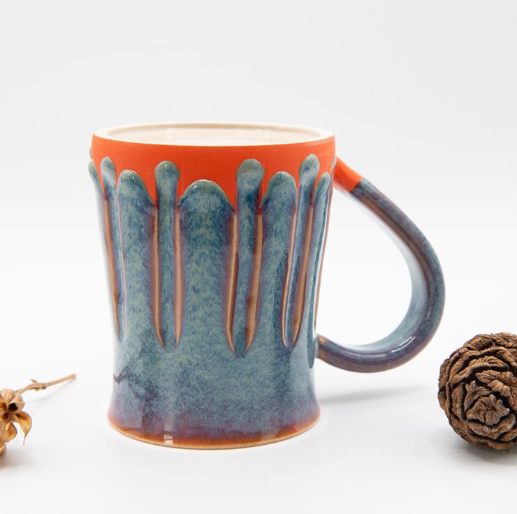 Hand-thrown and carved mug - 9.6-9.7cm x 7.3-7.5cm