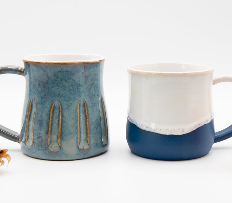 Hand-thrown and carved mug - 7.3 cm x 7 cm