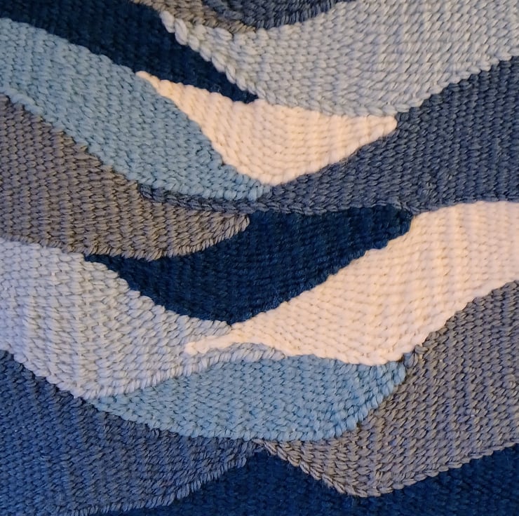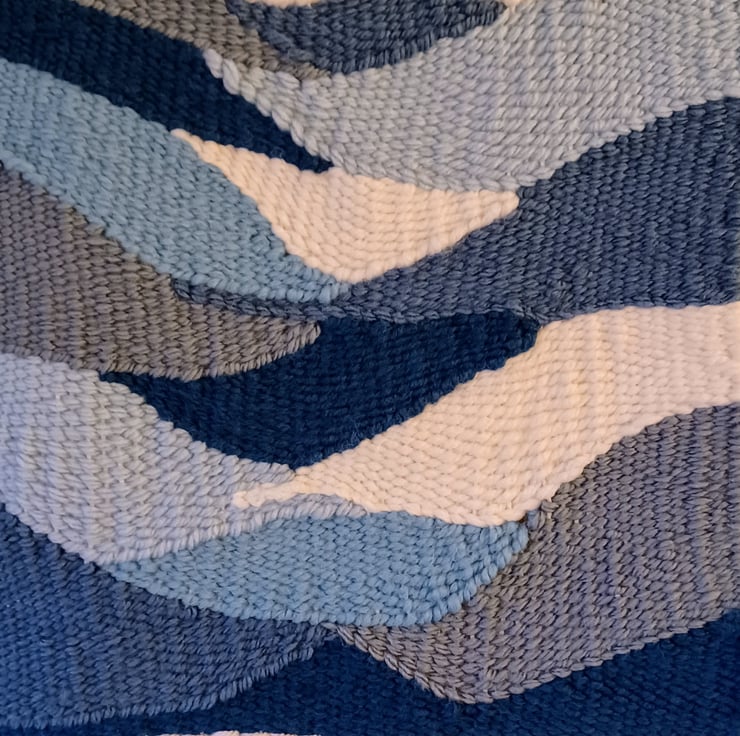 Colours and movement inspire my picture weaves, so it's no surprise that seascapes are one of my favourite subjects. This weave is more abstract as I wanted to capture the movement of the waves, and I added the seagulls to help give the picture more context in the background.