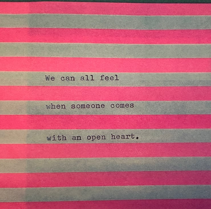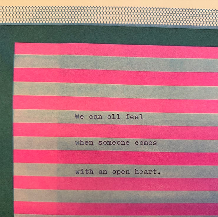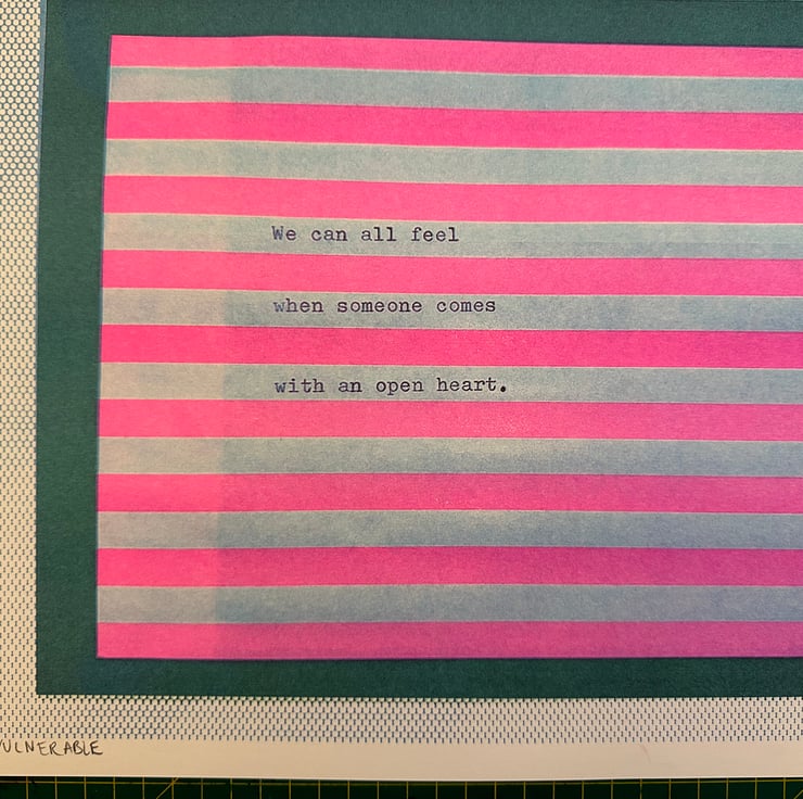 Discover the power of vulnerability and human connection with our "Vulnerability" Risograph art print. Featuring a striped sweet bag adorned with typewriter text that reads "We can all feel when someone comes with an open heart," this piece is a poignant reminder of the beauty and strength found in openness and authenticity.
