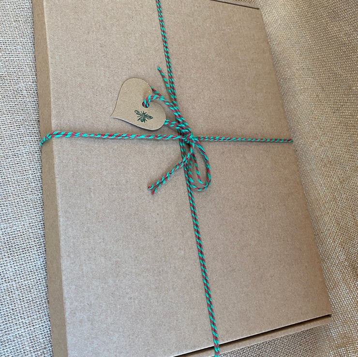Beeswax is a natural product. The cardboard packing box and tissue paper are made from recycled materials. Whether you choose the hemp or the cotton twine, either are 100% natural.