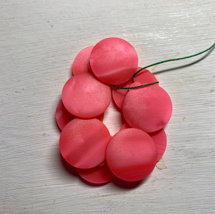 Set of 10 candy pink buttons with shank. Very light weight and flat, so they won’t hang heavy on clothing.