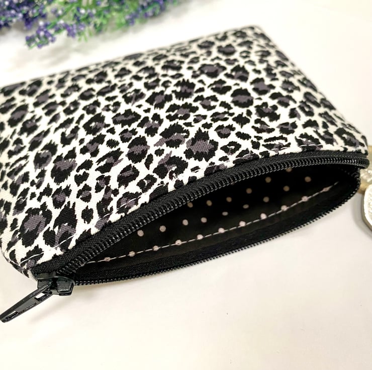 Handmade using Makower animal print cotton fabric with a coordinated cotton lining and a zipper to keep all of your items safe.