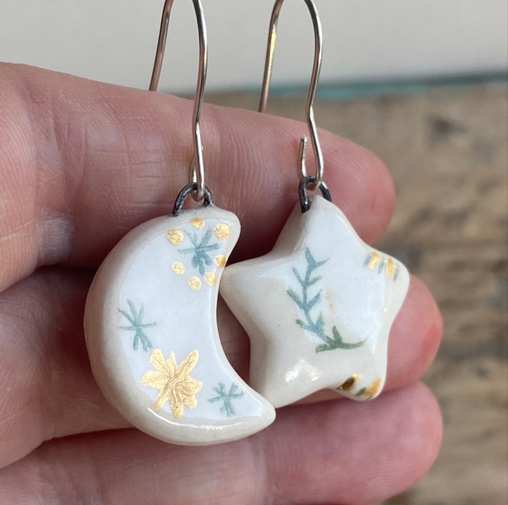 Each star measures 2.3cm with a total drop of 4cm, with each moon measuring 2.4cm with a drop of 4cm. Ceramic is surprisingly lightweight making them perfect for easy to wear earrings.