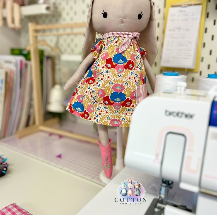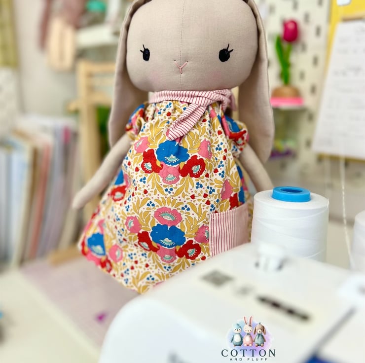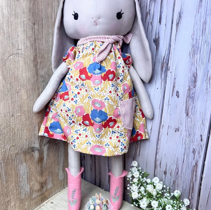 Meet Briana Bunny! Briana is a delightful handmade bunny, created with lobe in my garden sewing studio using Tilda fabric throughout. She's soft, cuddly and always dressed to impress with her beautiful dress that perfectly matches her gentle personality.
