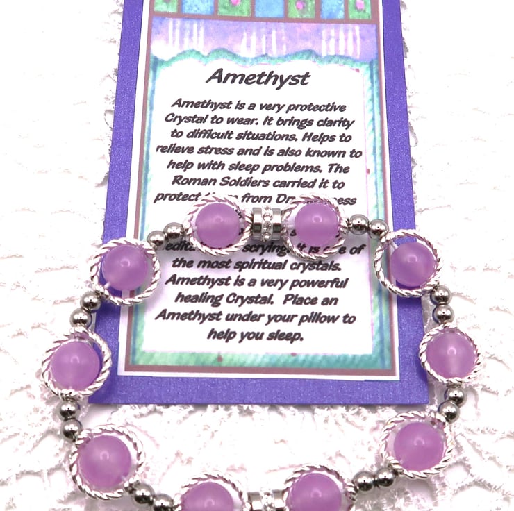 Your Bracelet come with a pretty Organza Gift Bag with a small card of information on Amethyst.