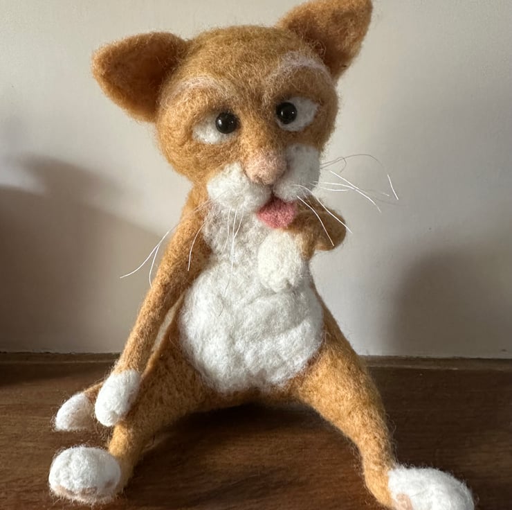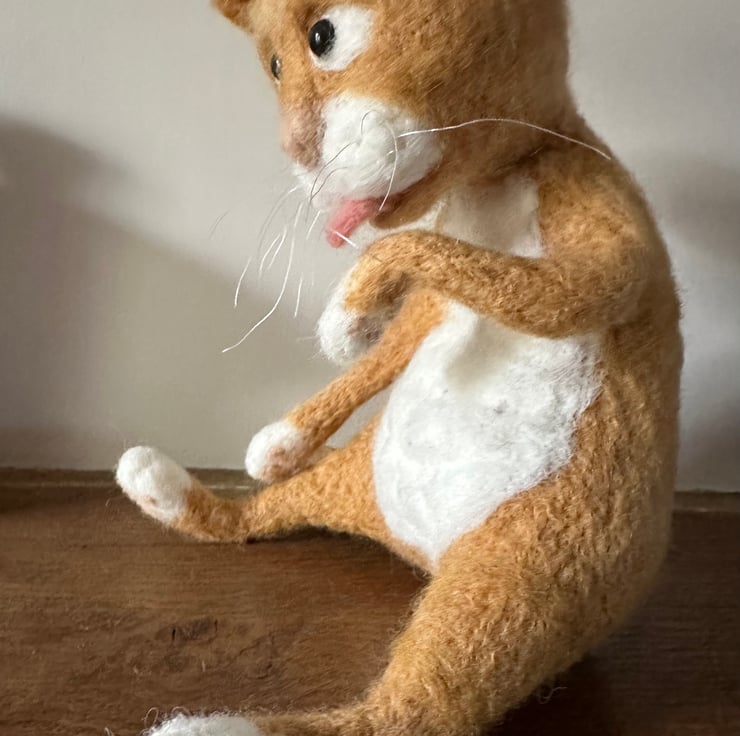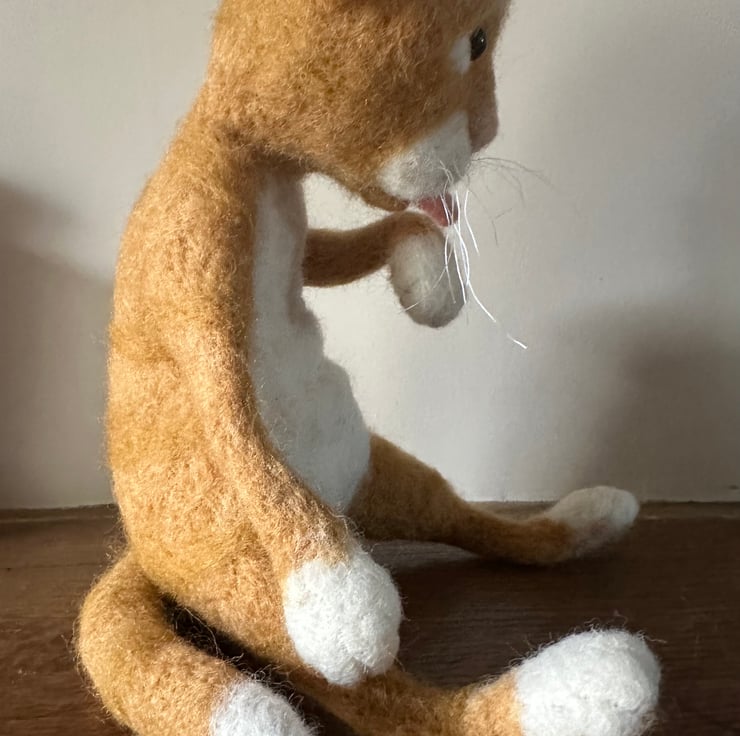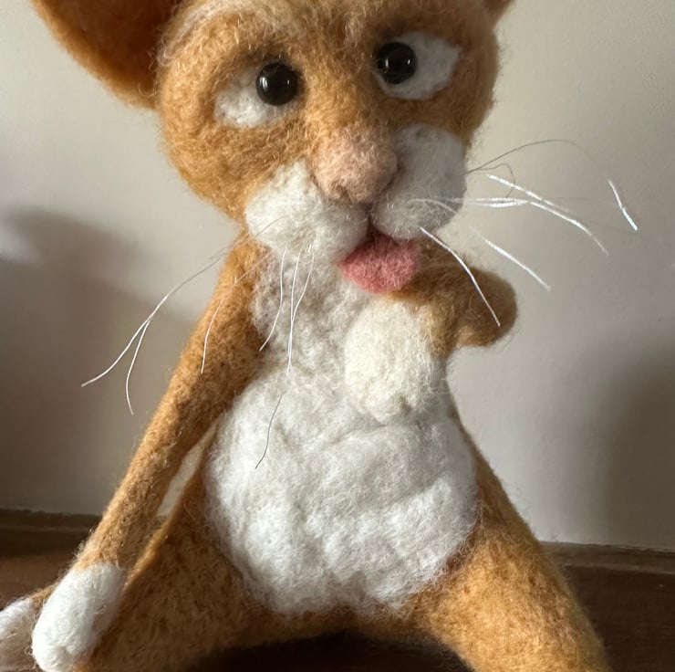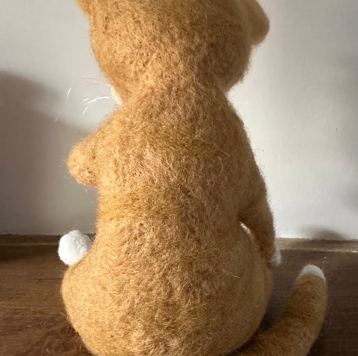 Needle felted wool on a wire armature with bead eyes and cotton whiskers