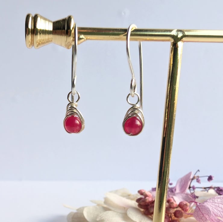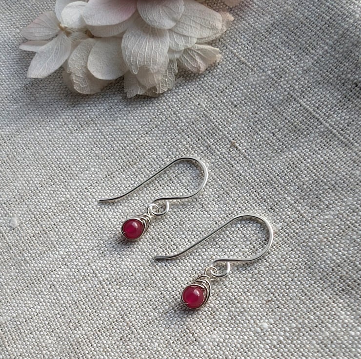 RUBY Earrings Sterling Silver Dainty Wire Wrapped Ruby Earrings, July Birthstone