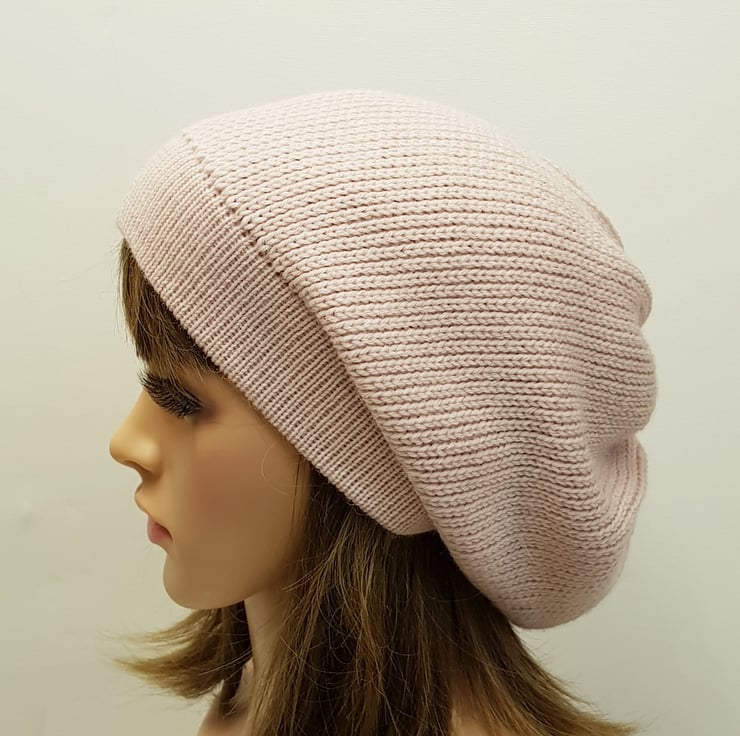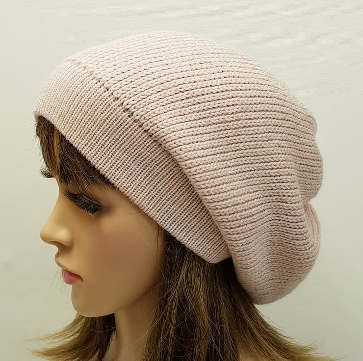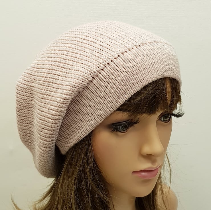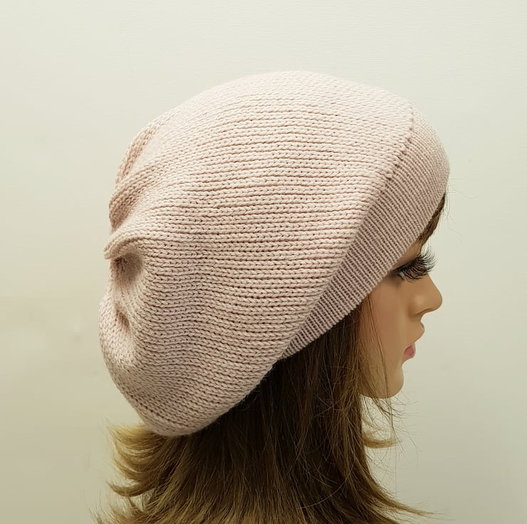 Knitted alpaca blend baggy beret, handmade fall tam, slouch hat for women.